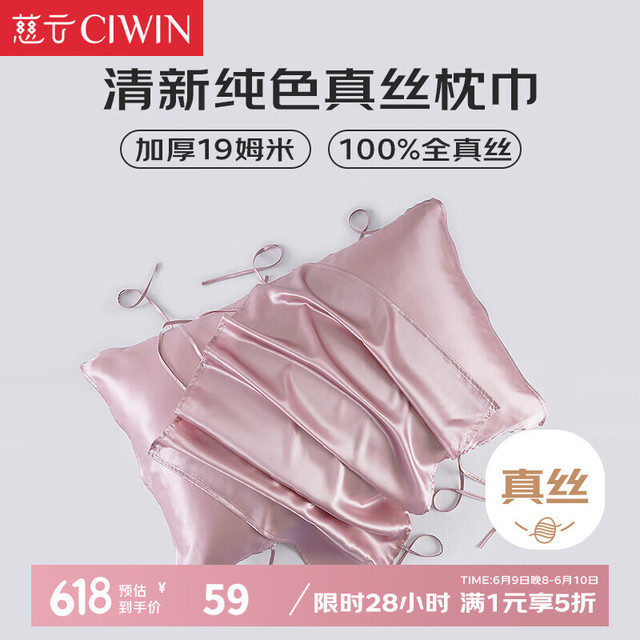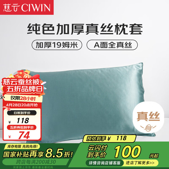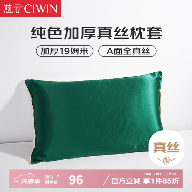 慈云 CIYUN 慈云 纯色真丝枕套 19姆米 100%桑蚕丝绸单面枕头套 74*48cm 虾青