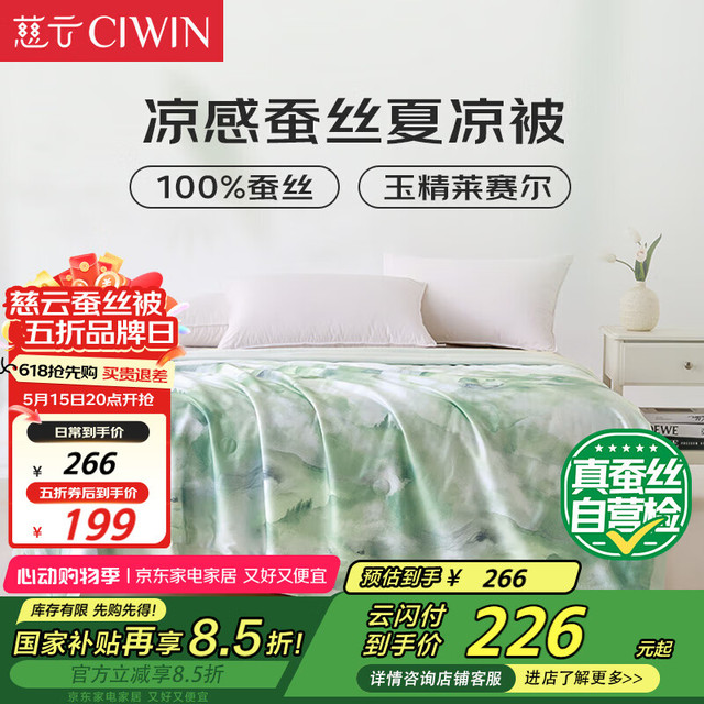 慈云 冰柔凉感蚕丝夏被 100%蚕丝可水洗夏季空调被 150*210cm 山境