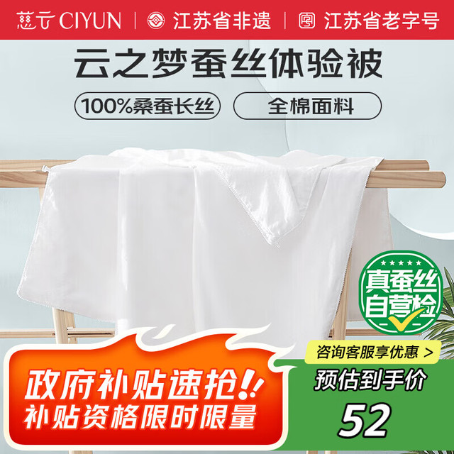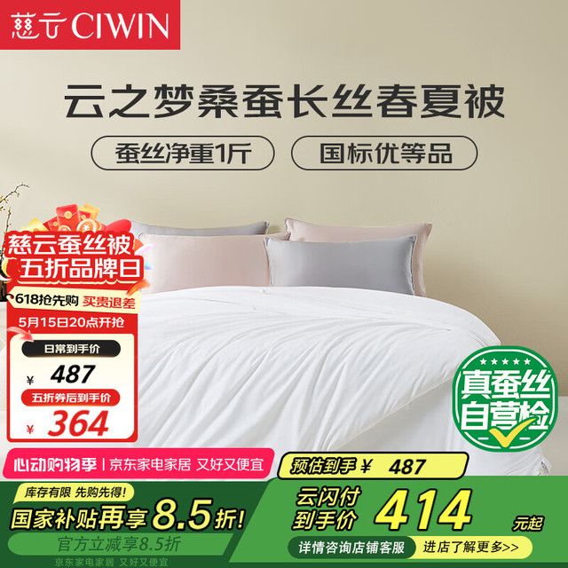 慈云 云之梦 蚕丝被 100%桑蚕长丝优等品全棉被 3.6斤 2*2.3m 白色