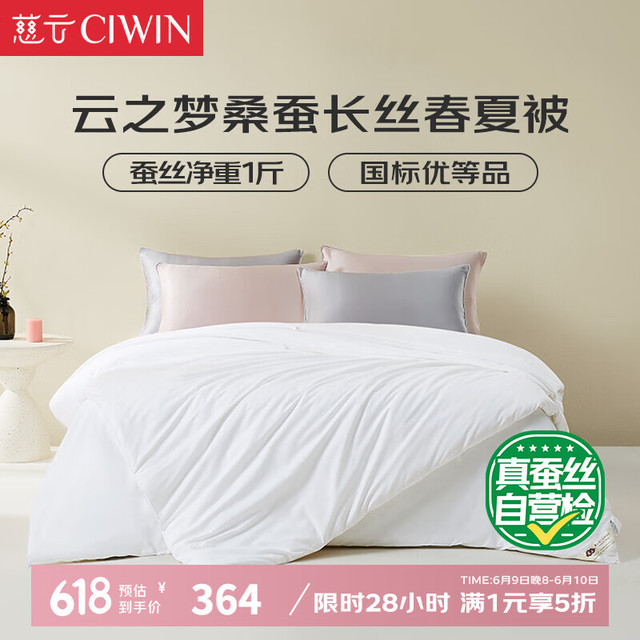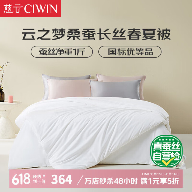 慈云 云之梦蚕丝被 100%桑蚕长丝优等品全棉被子总重3.6斤 2*2.3m 白色