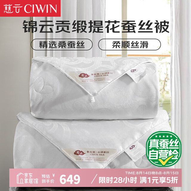 慈云 锦云提花蚕丝子母被100%桑蚕丝保暖四季被 被重约4+6斤 200*230cm
