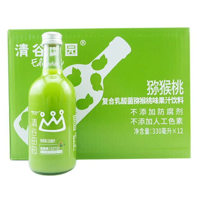 edenview 清谷田园 乳酸果汁饮料 芒果味/橙味/猕猴桃味/草莓味 330ml玻璃瓶/整箱装 猕猴桃味330ML*12瓶