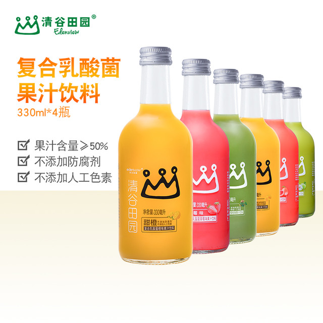 清谷田园 Edenview 复合乳酸菌果汁饮料330ml 4瓶装 多种口味可选(芒果味)