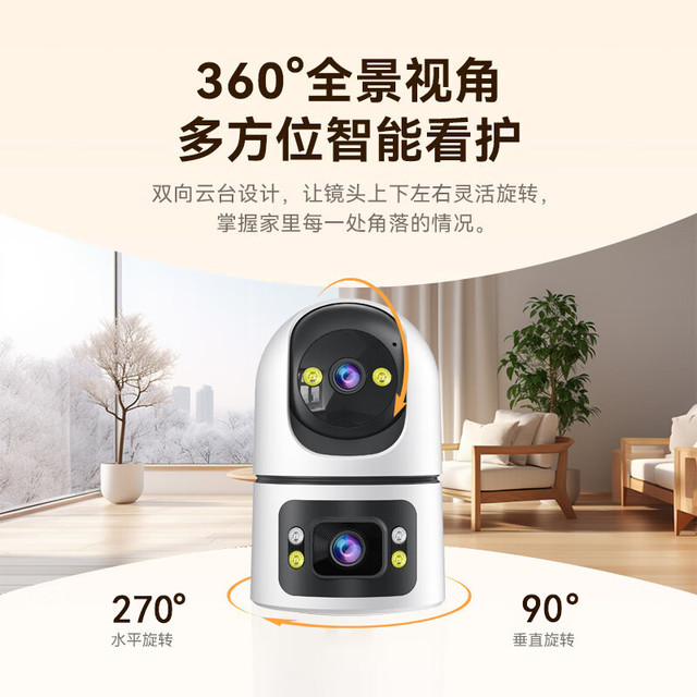 中沃 双摄1000万AI摄像头家用监控器360度无死角带夜视全景手机远程无线室内看护语音对话家庭