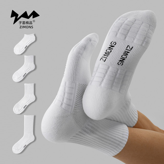 子墨袜子男士秋冬季运动跑步中筒纯棉毛巾底袜篮球长筒袜白色短袜