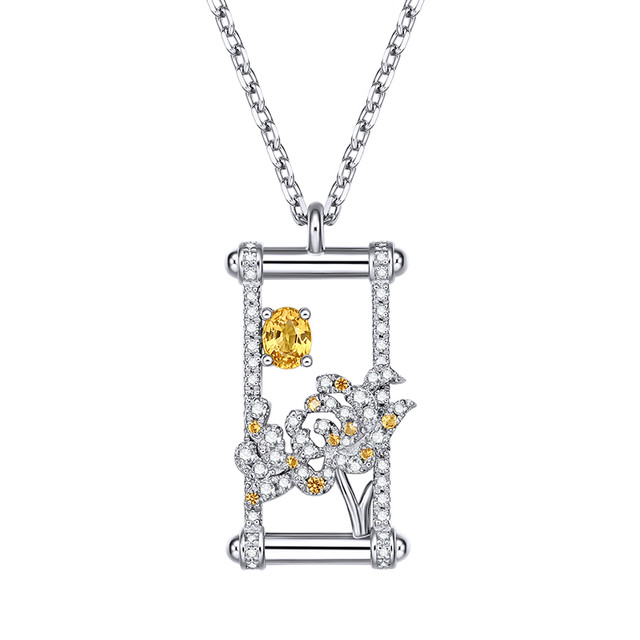 MUYE 牧野 彩宝 925银黄蓝宝石 菊花画卷项链