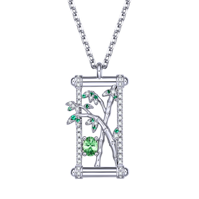 MUYE 牧野 彩宝 925银沙弗莱宝石 青竹画卷项链