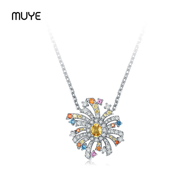 MUYE 牧野 彩宝 天然彩色宝石黄蓝宝首饰 烟花纯银项链 原创设计
