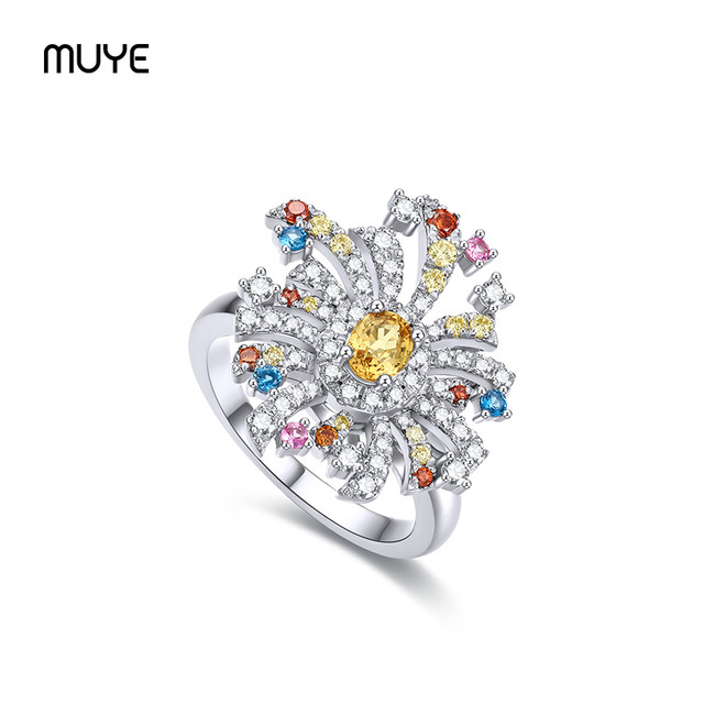 MUYE 牧野 天然彩色宝石黄蓝宝纯银戒指 烟花指环女原创设计