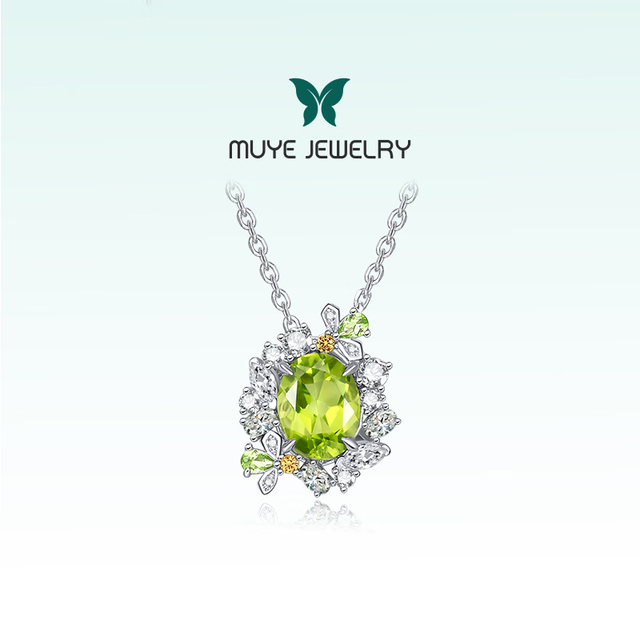 MUYE/牧野天然彩宝 925纯银项链 2.1克拉橄榄石萤火虫项链