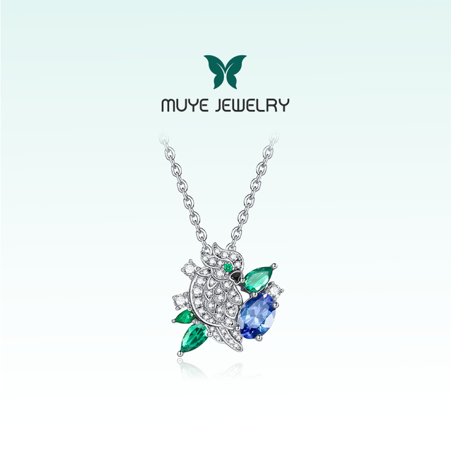 MUYE 牧野 925纯银项链 天然彩宝坦桑石鹦鹉项链 MYN0318