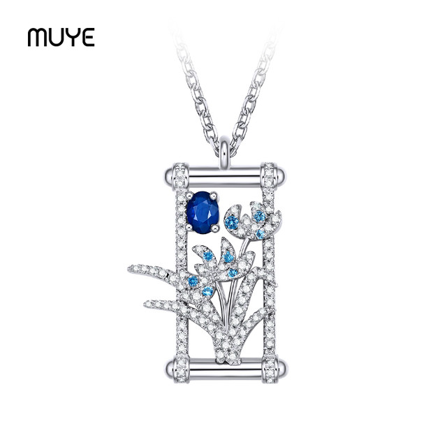 MUYE 牧野 彩宝 天然彩色宝石蓝宝石首饰 纯银兰花项链