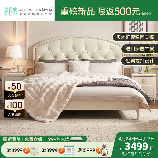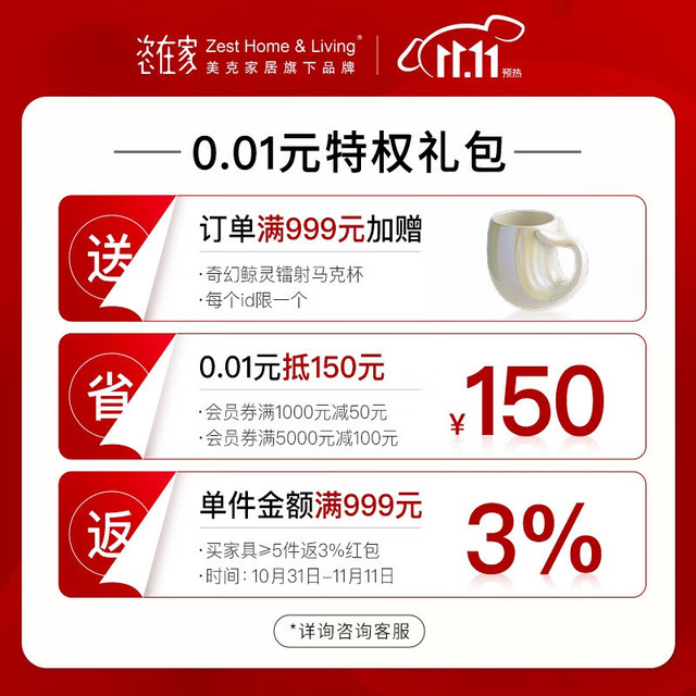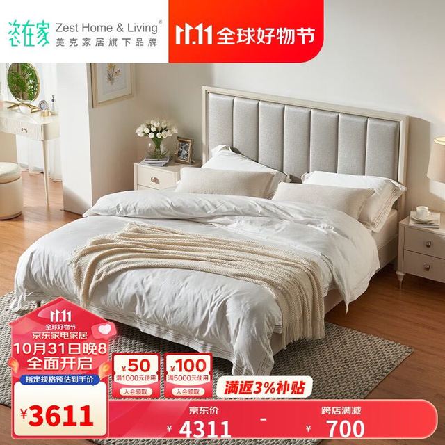 恣在家 美克美家恣在家巴黎小情歌三人位布艺现代轻奢客厅小户型实木沙发1806.2元(需用券)