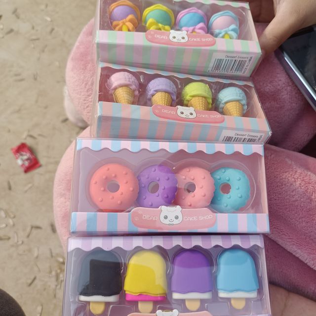 很被小孩子喜欢的高颜值橡皮擦,八块钱有十六个,价格是很划算的,冰淇淋,甜甜圈,雪糕,棒棒糖,这些样子都很可爱,小侄女很喜欢