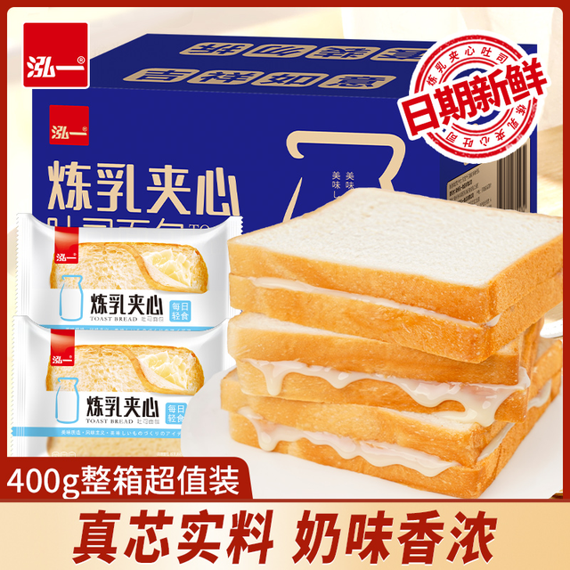 抖音超值购:C&C 泓一400g炼乳夹心吐司8袋早餐下午茶面包点心休闲零食小吃整箱 C