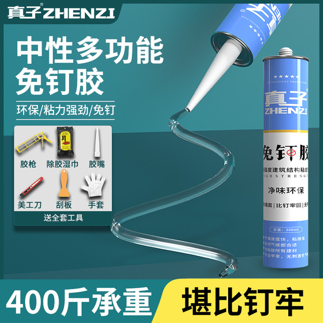 4.9 真子 免钉胶强力胶水万能胶结构胶厨卫墙粘合剂免打孔代钉胶透明玻璃胶10.8元(需用券)