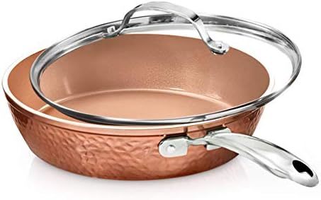 GOTHAM STEEL 12 英寸约 30.5 厘米不粘煎锅带盖子 – 锤铜系列,优质铝炊具带不锈钢手柄,感应板均匀加热,可用洗碗机清洗和烤箱