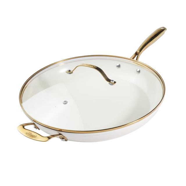 GOTHAM STEEL 炒锅 陶瓷材质 14英寸带盖家庭炒锅约35.6厘米 超非粘