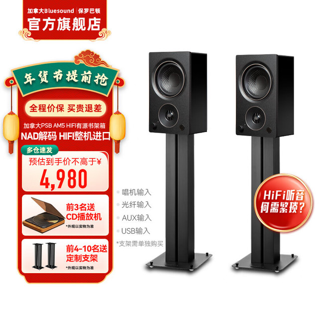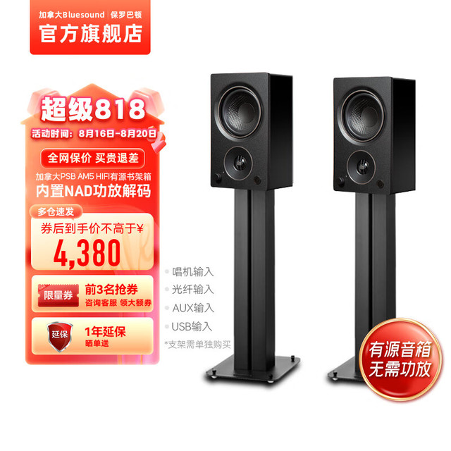 PSB 加拿大保罗巴顿PSB Alpha AM5有源2.0桌面音响hifi发烧音箱蓝牙高保真 黑色4380元(需用券)