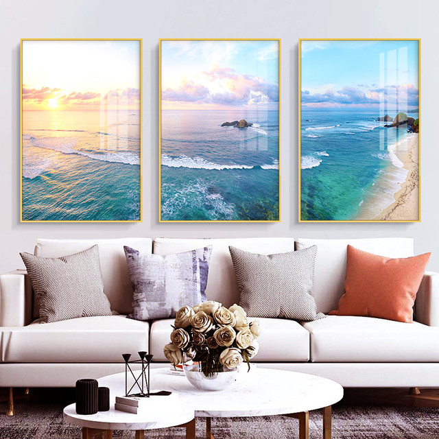 现代简约客厅装饰画风景壁画北欧沙发背景墙画卧室水晶挂画免打孔