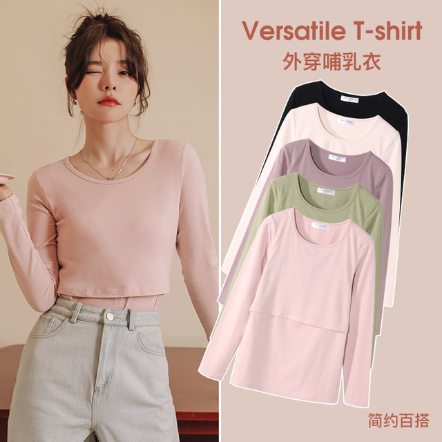 米度丽 哺乳衣秋衣上衣外出春秋季产后喂奶t恤夏季纯棉月子服秋装