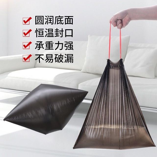沤迈宝 垃圾袋家用加厚手提式自动收口抽绳厨房湿拉圾塑料袋 48*45cm 1卷15只 颜色随机