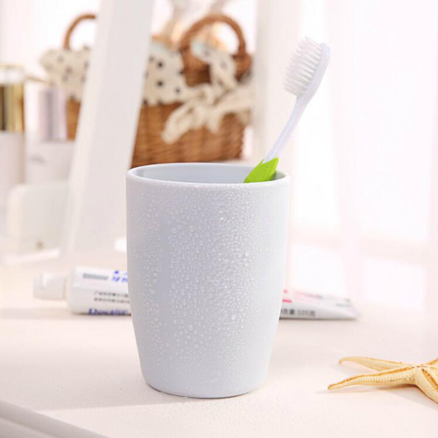 沤迈宝 素雅色刷牙杯家用塑料漱口杯 创意带手柄情侣牙缸杯洗漱杯牙刷杯 淡蓝色