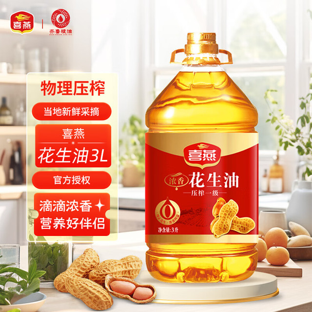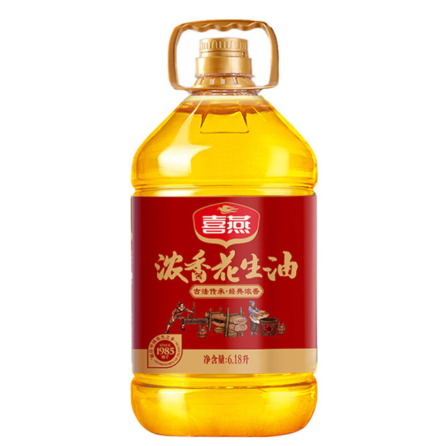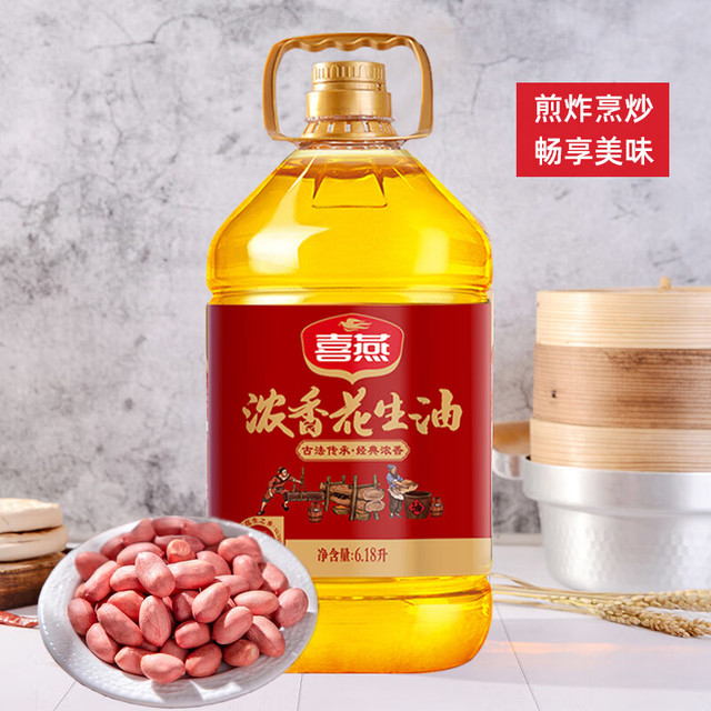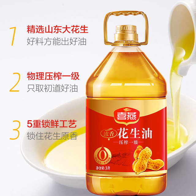 喜燕(happy swallow)这款压榨一级浓香花生油,经物理压榨工艺处理,油液金黄透亮,油线绵长顺滑。可用于炸煮煎炒、凉拌等菜肴制作。瓶装包装,方便储存。保...