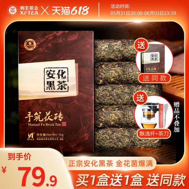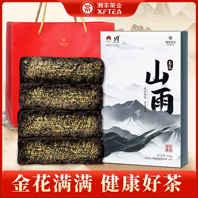 湘丰 安化黑茶湖南安化黑茶特级金花茯砖茶陈年天尖手筑茯茶叶礼盒1kg