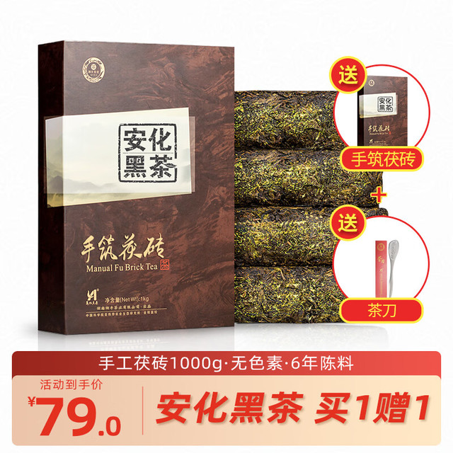 湘丰安化黑茶湖南特产茶叶正宗金花茯砖茶节日送礼口粮茶叶自己喝 7年陈 安化手筑茯砖+茶刀
