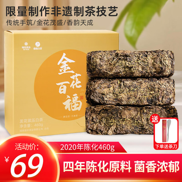 湘丰 金花茯砖茶黑茶安化特产茶叶手筑茯砖茶叶2020年份金花百福伏茶 甜香