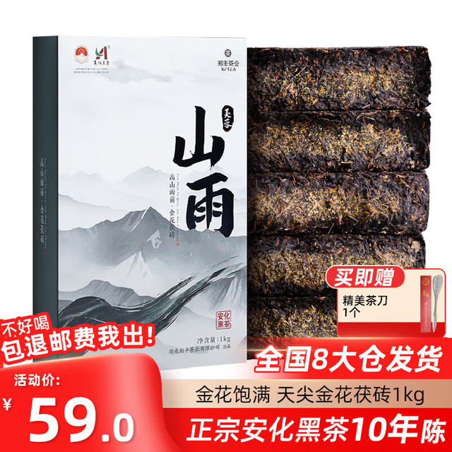 湘丰 湖南安化 手筑金花茯砖黑茶,3年陈茶,纯高山料。砖面平整,茶梗含量少;切面金花茂盛,菌香浓郁;叶底细嫩,汤色清澈明亮,口感醇和,经久耐泡,规格:1kg。天...