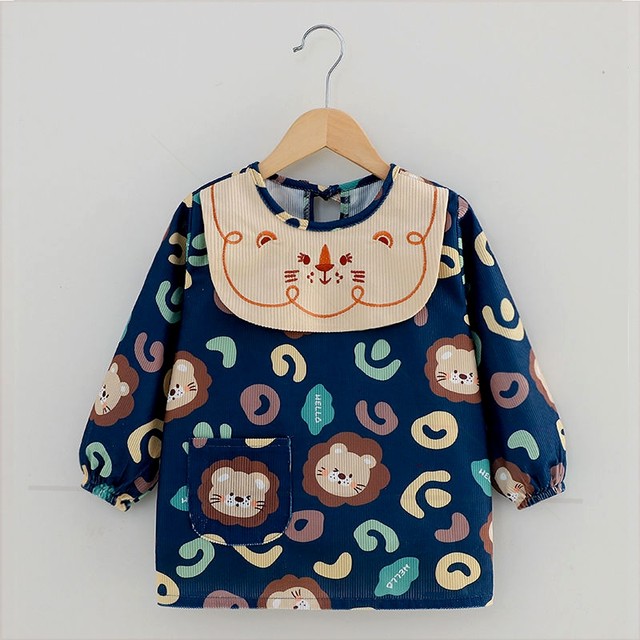 杰西 新款儿童罩衣秋冬宝宝围兜吃饭衣长袖洋气防水护衣反穿衣婴儿围裙