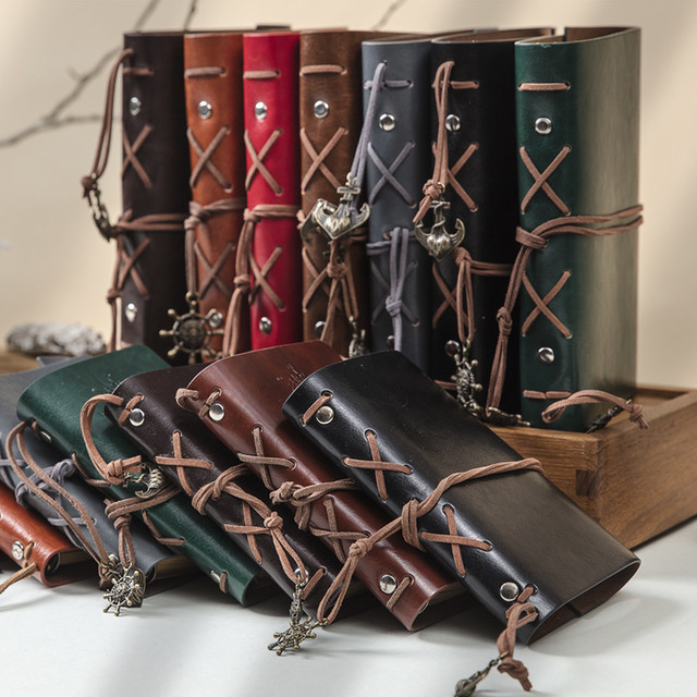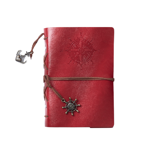欧式复古海盗记事本创意旅行日记本笔记本子文具活页夹定制logo牛皮纸素描空白手绘简约活页本可拆卸手帐本(A6玛雅红)