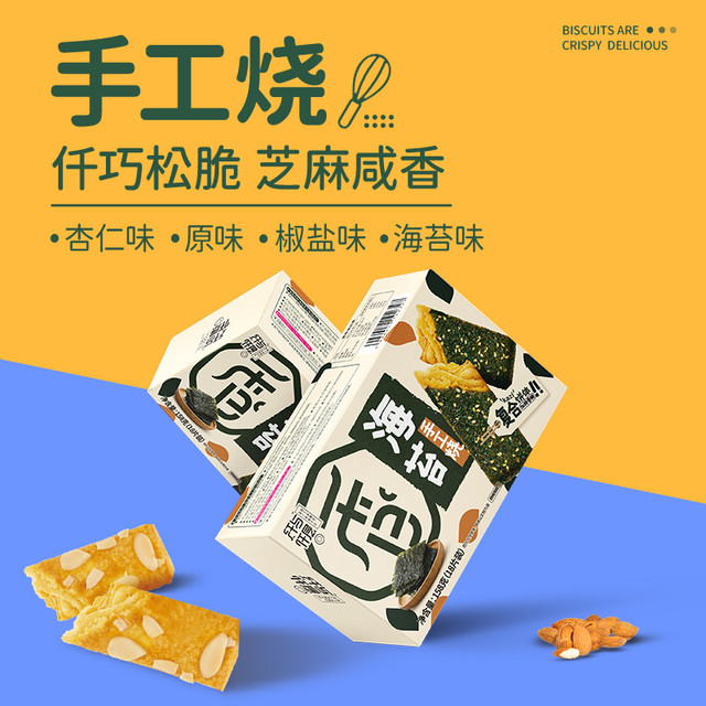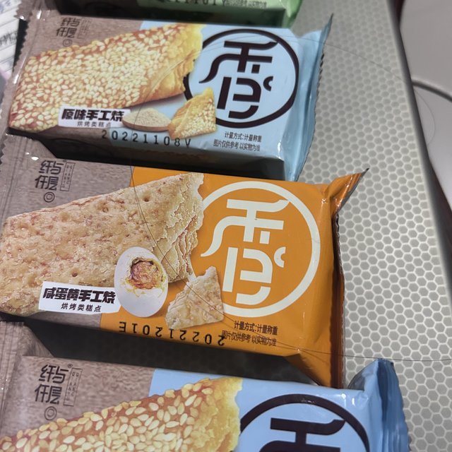 饼干很酥脆,也是网红零食,咸香的,适合很多人的口味,快尝试一下吧,你绝对会再次回购,个人喜欢海苔的和咸蛋黄的,其实每个都很好吃哦