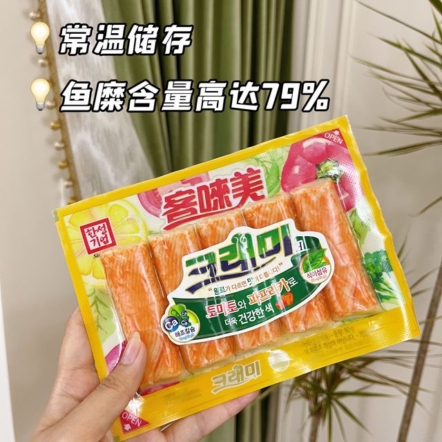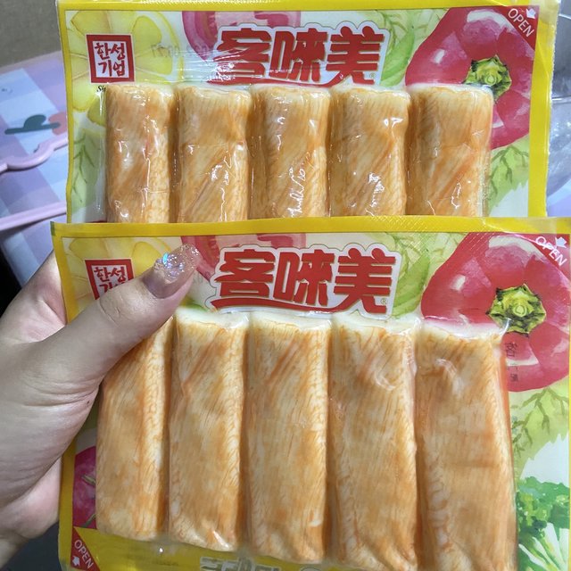 开袋即食的蟹肉棒跟火锅里边的蟹肉棒不一样,这个几乎没有粉质感入口,真的非常想蟹肉有蟹肉的筋道看下成分表真的有蟹肉推荐指数五颗星。