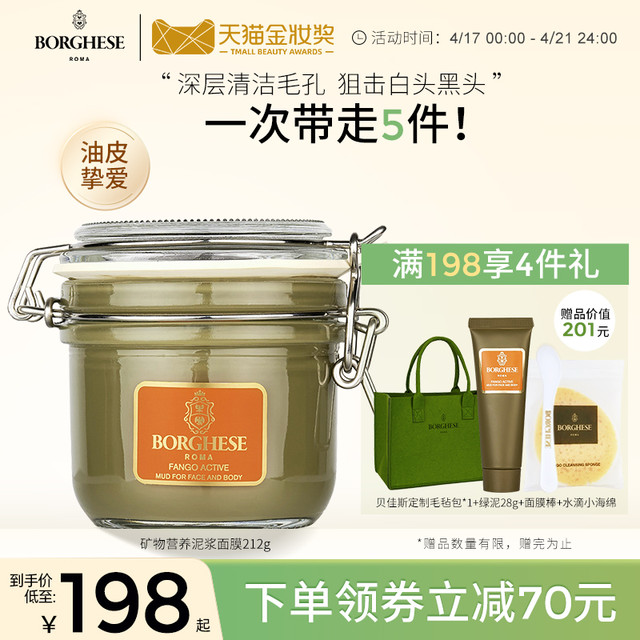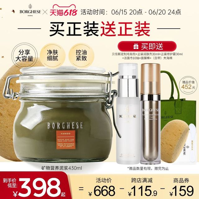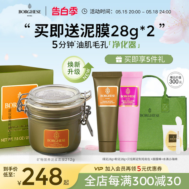 BORGHESE 贝佳斯 进口矿物营养去黑头清洁面膜涂抹式男女 深层清洁 绿泥430ml90元(需买3件,共270元)