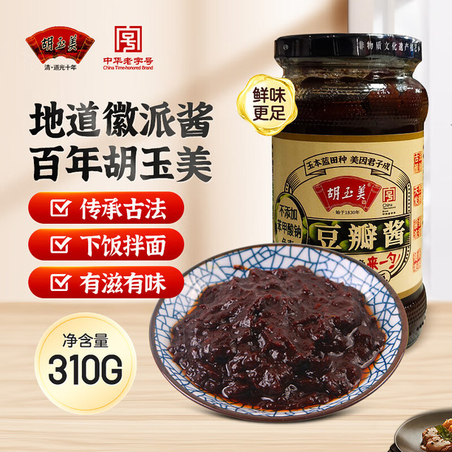 胡玉美 豆瓣酱310g 中华调味佐餐酱安徽安庆特产炒菜蘸酱拌面调料