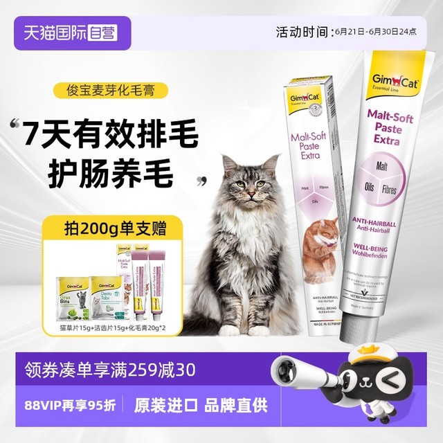 移动端:Gimborn 俊宝 猫咪专用 化毛膏29.7元淘金币最高抵扣0.99元