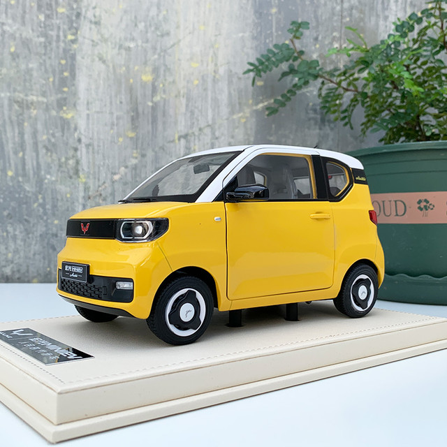 JOYmine 1:16原厂汽车模型 五菱宏光 MINI EV人民的代步车 底座高档展示罩 宏光 Mini EV 黄色