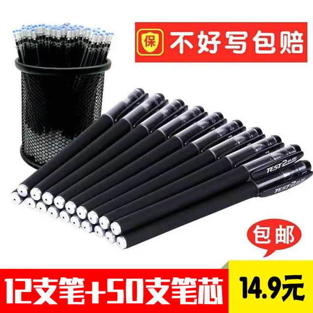 东柏 3中性笔考试专用笔学生用0.5/0.38MM碳素黑色水性签字水笔芯心圆珠笔全针管子弹头初中生文具用品 12支笔+50支笔芯(全子弹头) 0.5mm