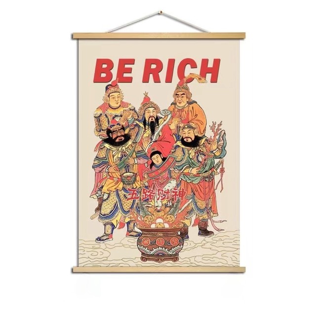 东柏 五路财神 挂布 30*40cm 木棍+油画布