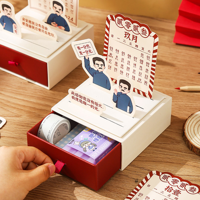 BmDm 本木 鲁迅系列收纳日历2024年新款创意复古桌面摆件学生小物件收藏推拉抽屉盒青年文创励志台历打卡月历计划本定制