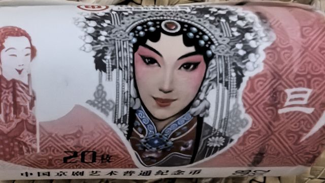 五元,换了也不吃亏。纪念币,京剧艺术。