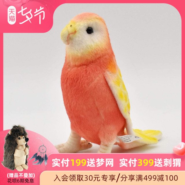 HANSA仿真毛绒小鸟玩偶公仔7637-柏克氏秋草鹦鹉14cm儿童认知礼物