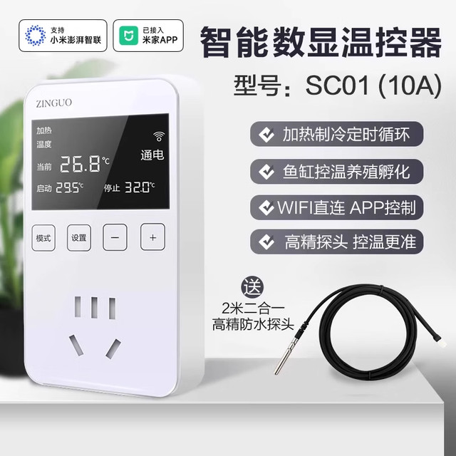 移动端:峥果 SC01 智能WiFi温控器开关 10A 黑色+2米水温气温通用高精探头139元淘金币最高抵扣7.95元