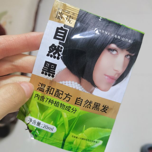 这是俺妈买回来遮盖白头发的染发膏,挺不错的,一小袋分装的用起来就很方便,而且确实质量也很不错,染出来不会假