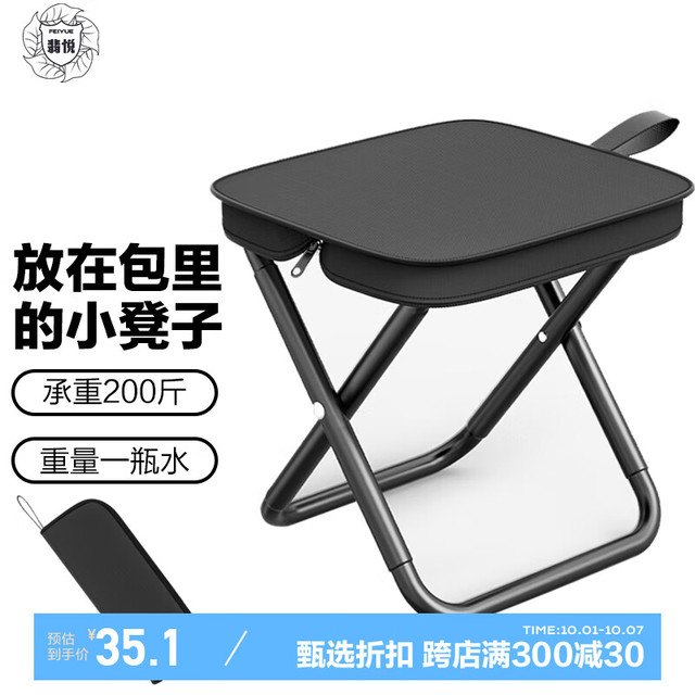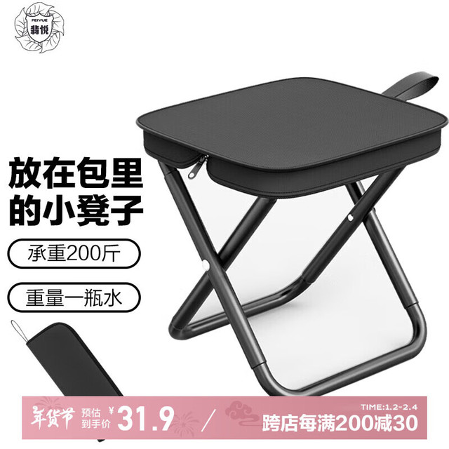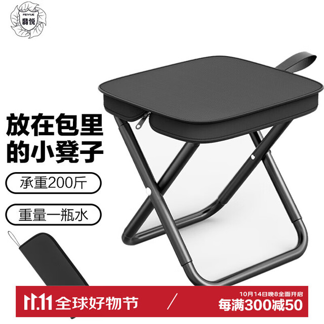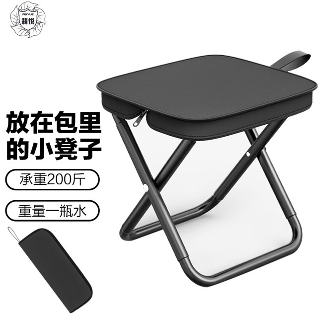 feiyue 翡悦 小马扎折叠凳 便携收纳椅 钓鱼地铁旅行神器 黑色