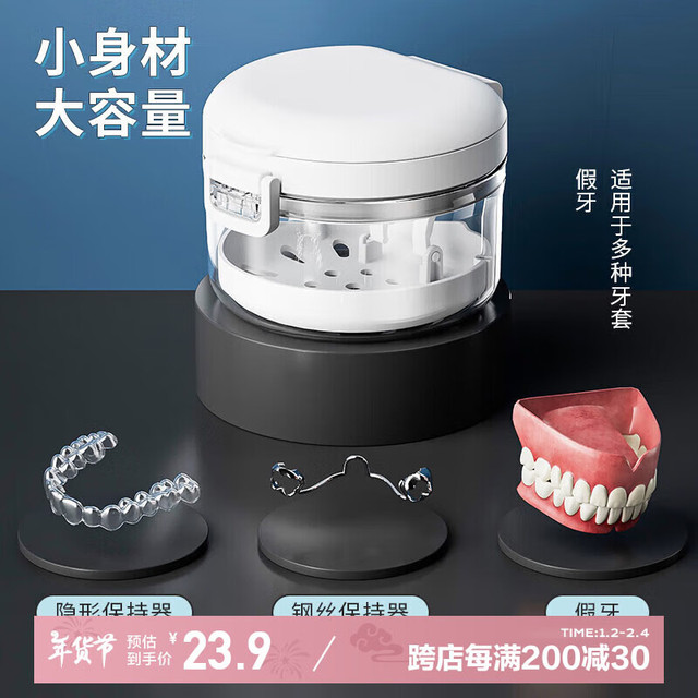 翡悦 保持器收纳盒 牙套盒隐形假牙盒 牙齿矫正器收纳盒清洗套装白色
