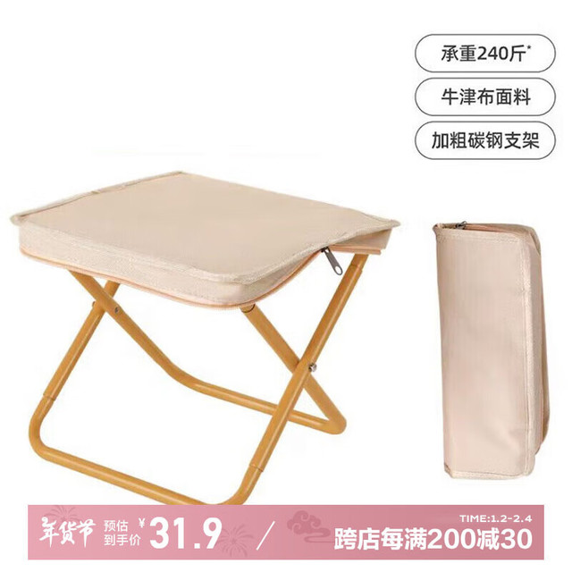 翡悦 小马扎折叠凳子便携收纳折叠椅钓鱼地铁旅行排队神器卡其色